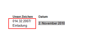 Verfügt das Schriftstück allerdings über keine Akten-/Vorgangskennung wird stattdessen das Aktenzeichen eingefügt.