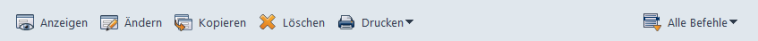 Die wichtigsten Befehle werden Ihnen auch in den Menüleisten der regisafe-Reiter und -Fenster angeboten; die vollständige Liste der Befehle einer Menüleiste wird Ihnen angezeigt, wenn Sie in der Menüleiste auf