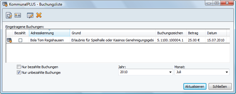 Buchungsliste bearbeiten für KommunalPLUS Genehmigung