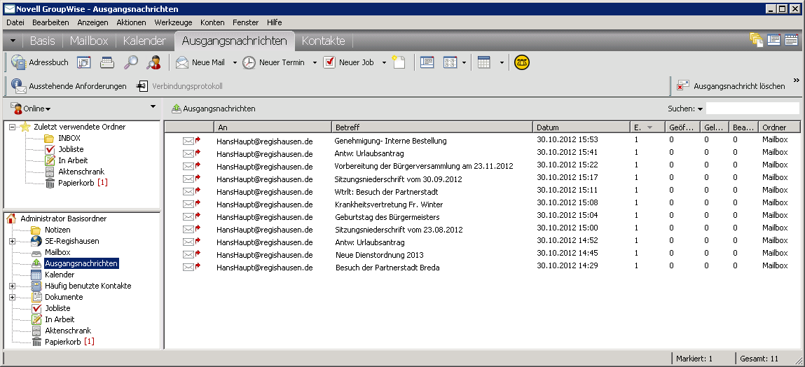 Ausgangsnachrichten im GroupWise-Client: