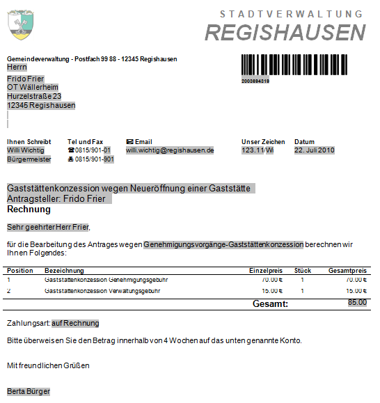 Rechnung erstellen für KommunalPLUS Genehmigung