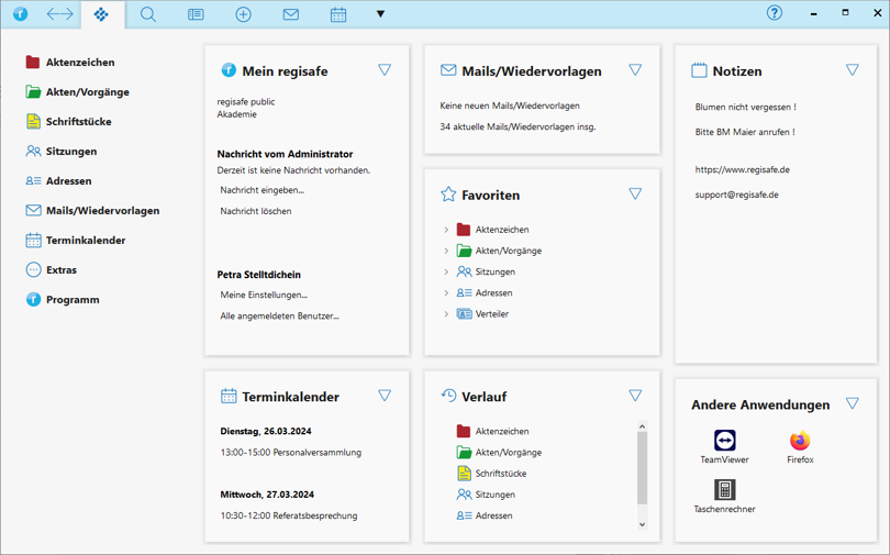 Im Folgenden werden die grundlegenden Prinzipien zur Bedienung von regisafe beschrieben: