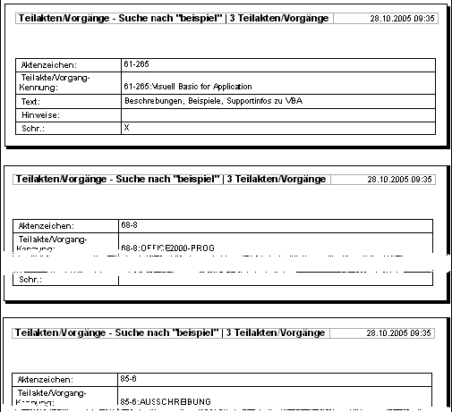 als Schriftstück ablegen. Zum Druck können Sie die Standard-Druckformate für Trefferlisten und