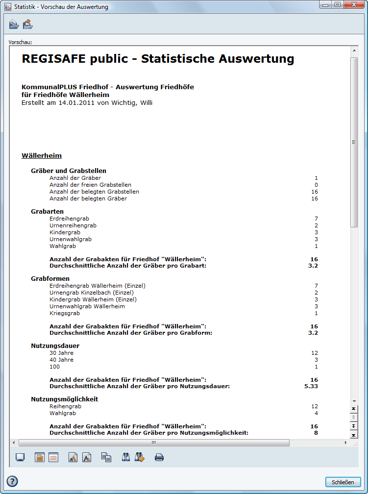 Statistik erstellen für KommunalPLUS Friedhof Personal