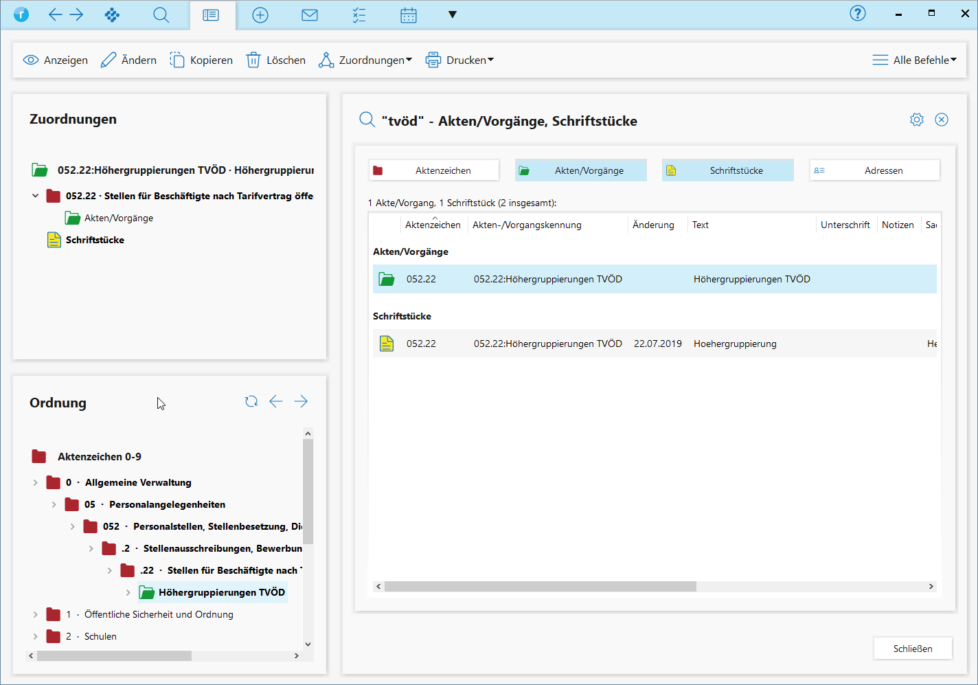 Dadurch finden Sie mit einer Suche z.B. gleichzeitig Aktenzeichen und Akten/Vorgänge.