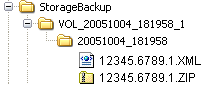 Unter diesem Volume-Verzeichnis werden automatisch Unterverzeichnisse in der Form Datum_Uhrzeit angelegt: Pro solchem Unterverzeichnis werden nur eine bestimmte Anzahl Dateien abgelegt, danach wird das nächste Unterverzeichnis in dieser Form angelegt. Diese Unterteilung umgeht Probleme, die manche Betriebssysteme mit Verzeichnissen haben, welche sehr viele Dateien beinhalten. Mit dem Eintrag DateienProVerzeichnis (siehe unter Schlüssel "DateienProVerzeichnis") können Sie die Anzahl der Dateien festlegen (Standardwert: 300). Da pro gesicherter Datei zwei Dateien erzeugt werden (eine ZIP- und eine XML-Datei, siehe unten) ist die tatsächliche Anzahl der Dateien pro Verzeichnis hier doppelt so groß (also standardmäßig 600).