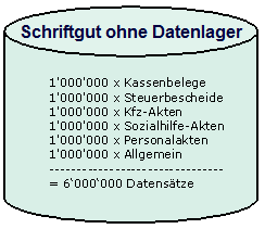 Beispiele: Im Datenlager Kfz-Akten werden alle Akten/Vorgänge und Schriftstücke unter dem Aktenzeichen 456 und untergeordnete gespeichert oder