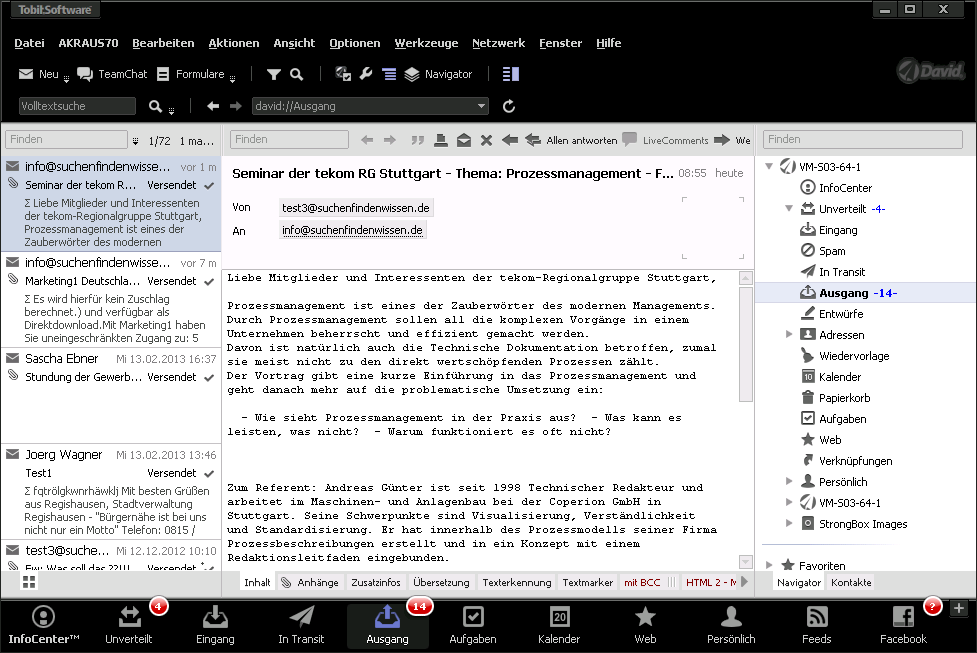 Anzeige des Postausgangs im David-Client: