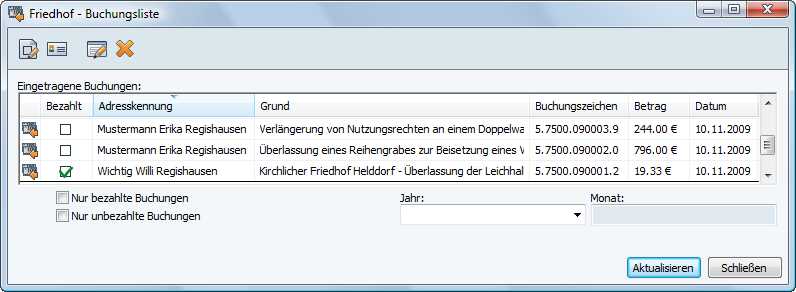Buchungsliste bearbeiten für KommunalPLUS Friedhof