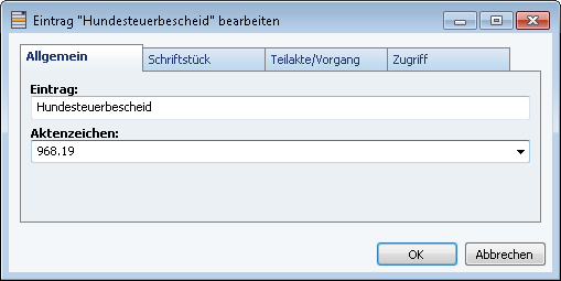 Im Reiter Akte/Vorgang des Ablagekriteriums wird bestimmt, in welcher Akte das Schriftstück abgelegt wird.